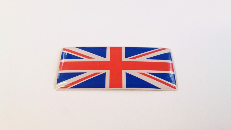 PVC coated Union Jack flag stickers. 45 mm x 20 mm